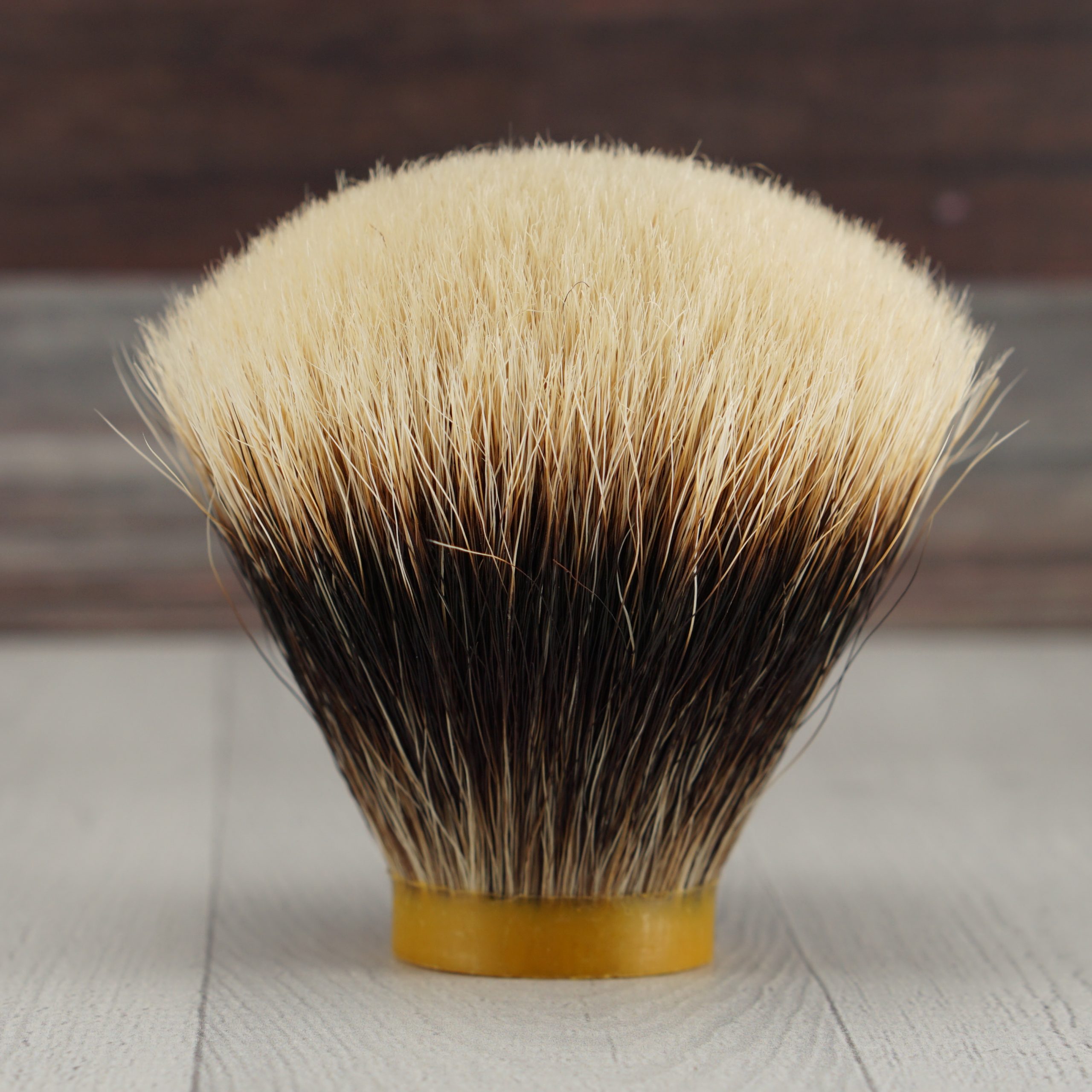 These fan shaped finest 2-band knots were custom developed with a popular badger hair supplier to fit the specifications I have honed in on over 15 years of wetshaving. No hyperbole when I say these are the nicest knots I’ve ever seen – ultra-dense hair pack along with soft, gel tips and great backbone results in a knot with excellent face and bowl lathering properties that will provide you with an unforgettable shave. Add one to your brush handle purchase for the full Viking experience. 28mm base knot diameter.
